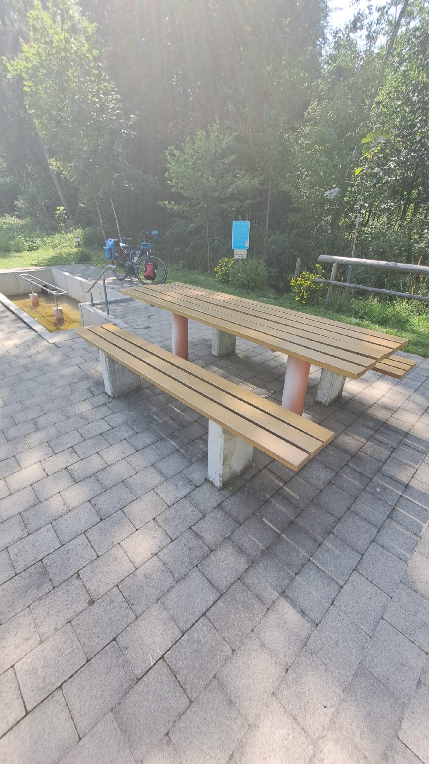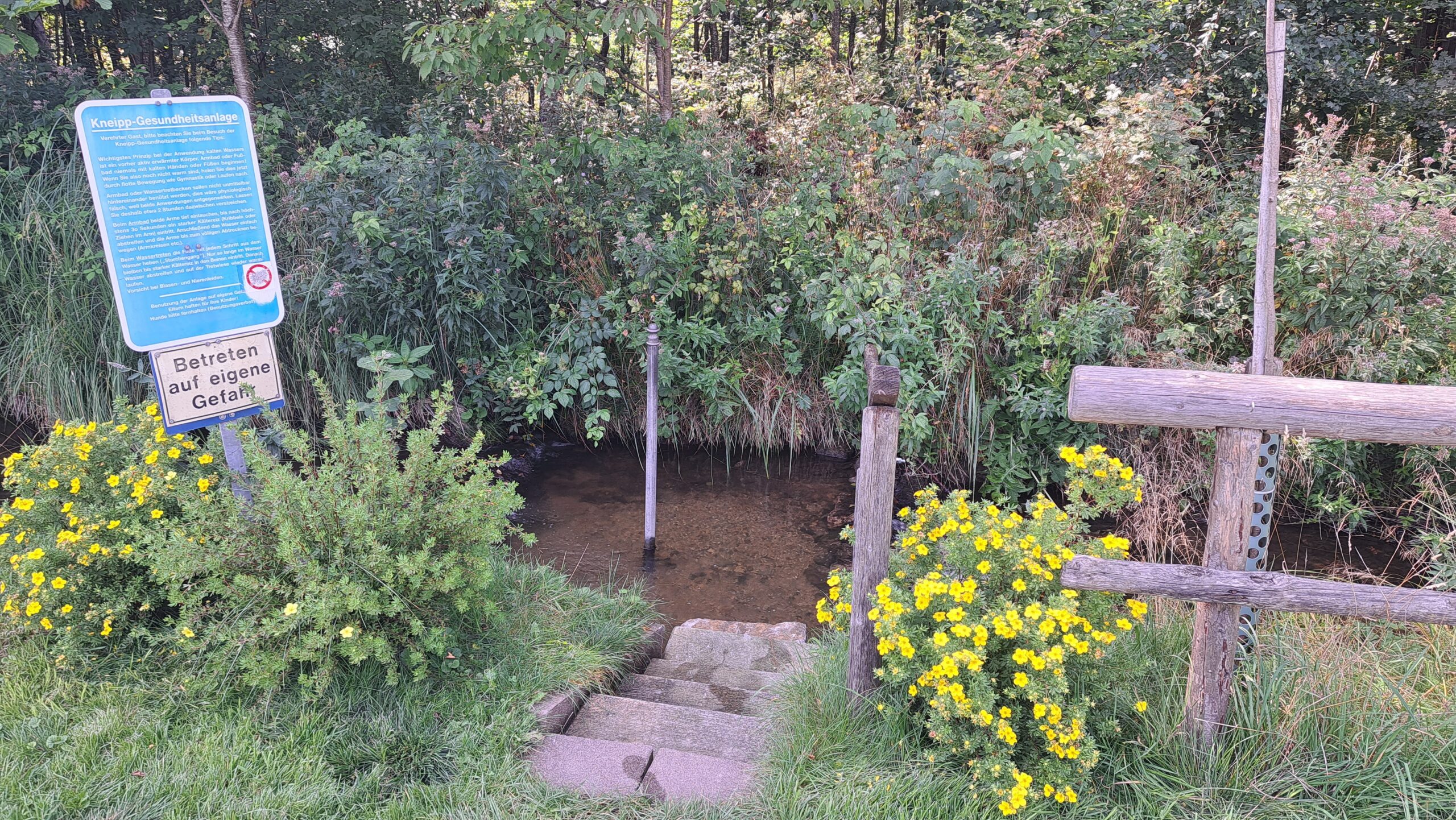 Zweimal lag an der Veloroute eine Kneippstation. es bestand die Möglichkeit die Füsse im frischen Bachwasser zu baden. Habe davon 2 Mal Gebrauch gemacht.