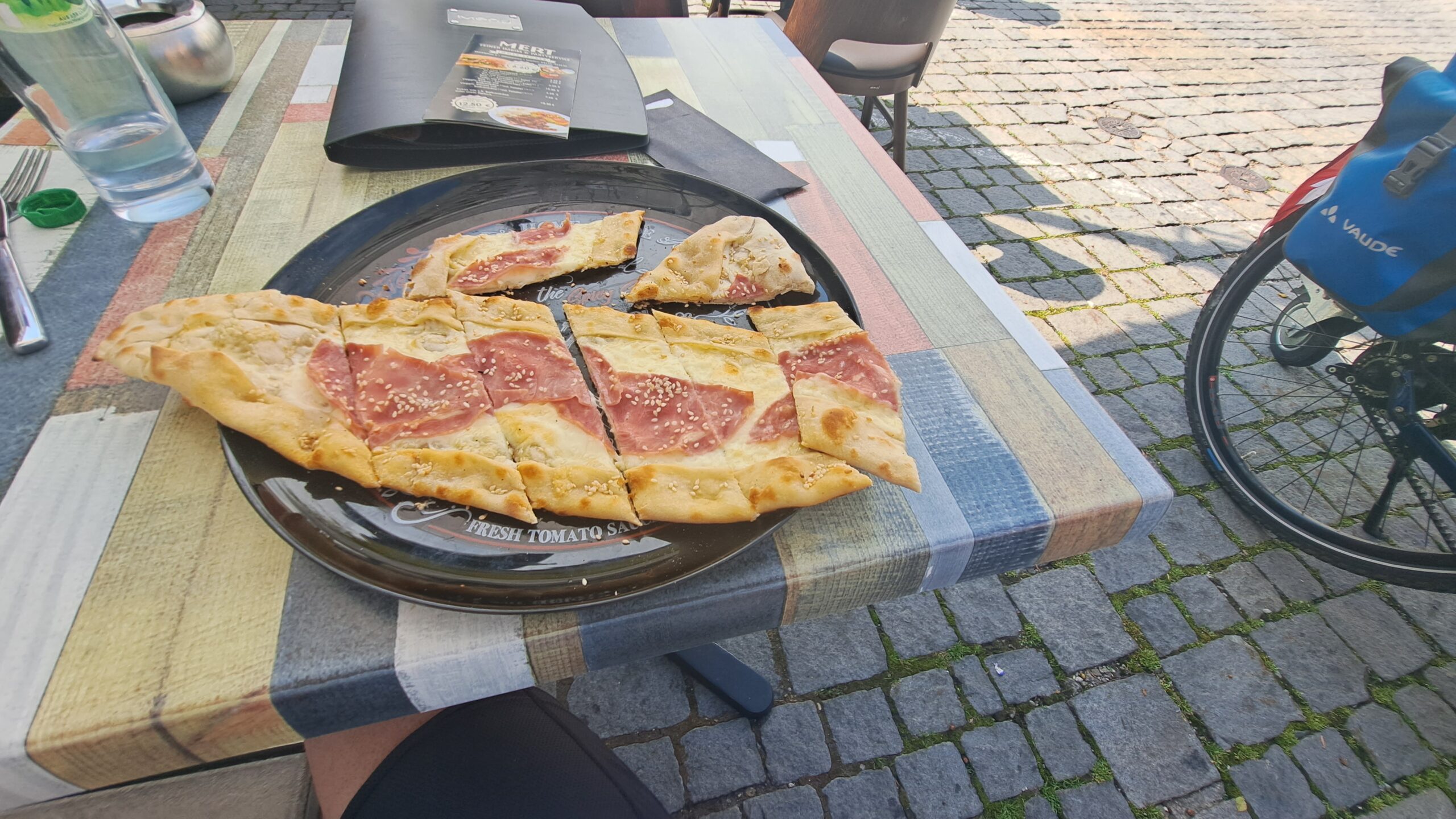 Übernachtet habe in Wörishofen im Hotel Bad Wörishofen. Das zimmer gut aber leider kein Internet. Ich war zuhinterst im Gang. Dafür eine extra Wallbox die die Akkus von Velos zu laden. Das habe ich zum ersten Mal gesehen und benutzt.