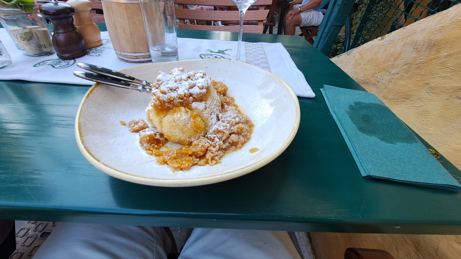 Die Winzerplatte war gut, aber die Arillenköndel werden nicht zu meinem bevorzugten Dessert.