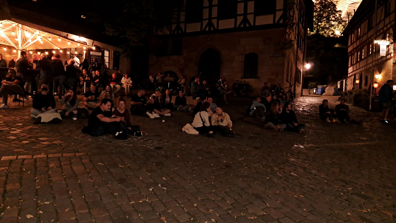 Nürnberg ist eine lebendige und attraktive Stadt. An einem gewöhnlichen Dienstag Party unter dem Schutze der riesigen Burganlage.